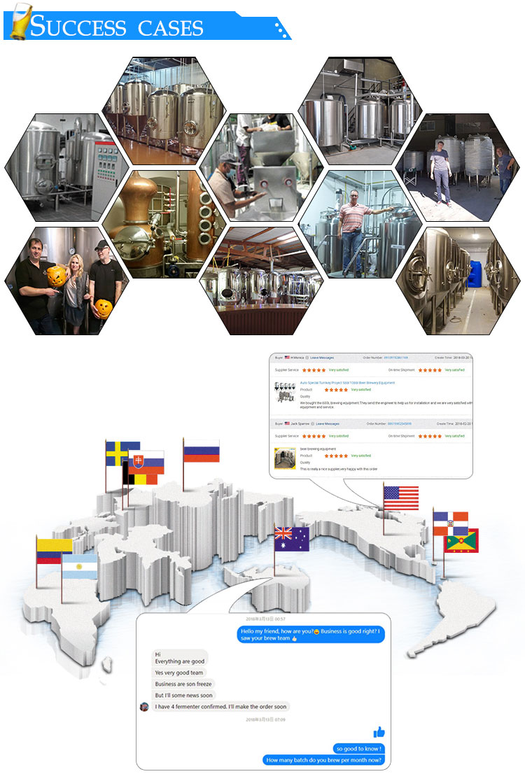A: We have 300+ world-wide customers, covering every continent. With your detailed request of brewery, we’ll provide you contacts for calling and visiting our successful brewery projects.