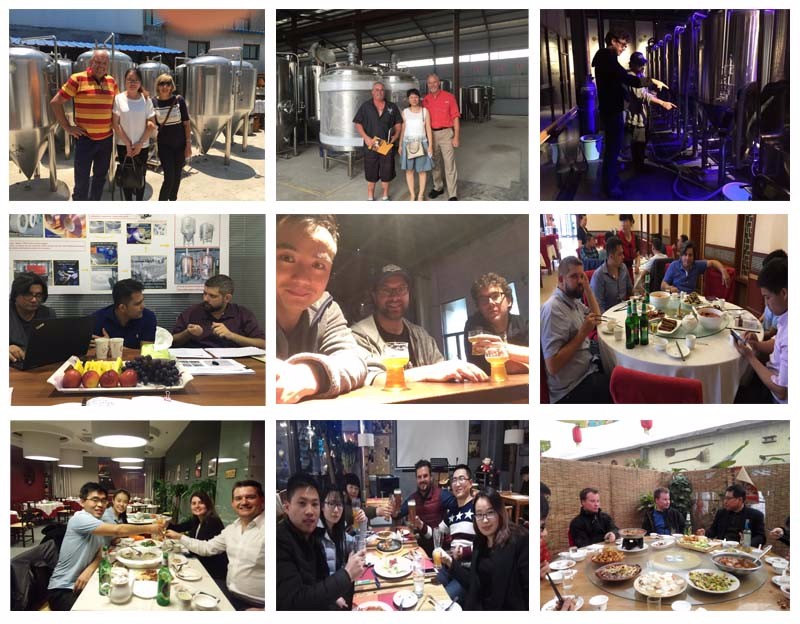 A lots of customer, they are from Euro, USA, Norway, Sweden, France, Romania, Ireland, UK, Ecuador, Indian, Czech Republic, Uzbekistan, Russian........ and so on. They pay a trip to our company and factory, to inspect the micro brewery equipment quality, processing details, as well as taste beer in our brewery, and visit some bar, brewpub, cartering center in our cisy that installed by our company. Anyway, We have a good time.
