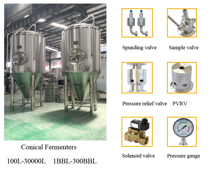 | Fermenter tank/unitank details | 1.The traditional design of the fermenter's cylinder and cone is double-jackets, the seal head is single-jacket, based on the original design, we have developed the energy-saving equipment with double jackets seal head, favored by constomers.