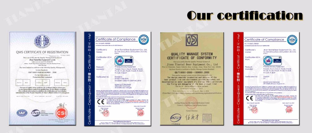 Our 1000l beer fermenter has passed the CE certificate for low pressure, machine as well as the pressure equipment.