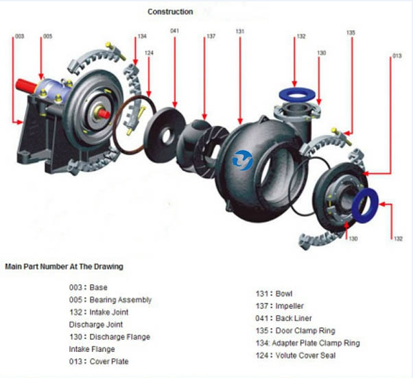 Applicable to: sand dredge pumping , dredge river, mining and transport metal smelting .Flow range: 36-3800 m 3 / h Head range: 3.5-80 m. Maximum through particle size: 254 mm .Maximum efficiency: 72% Cavitation allowance: 2-8 NPSH (r).