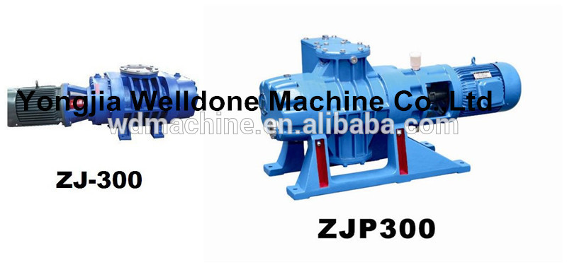 Roots vacuum pump is also known as the mechnical booster which is a positive displacement type pump. It is one of the special pumps which can reach middle, high vacuum rang. Its work principle is similar to the Root fan. Both of them used a pair of rotors, whose shape looks like 8, to achieve the suction and discharge process.According to the technics that the plenty of vapor and solvent is required to pump in the mechnical, phamacy areas, we have improved the seal type of the bearing housing and gear box of the ZJ series Roots pump to reduce the emulsification of the pump oil efficiently and make the Roots pump more suitable to assemble with the water ring vacuu pump to suction more vapor and solvent