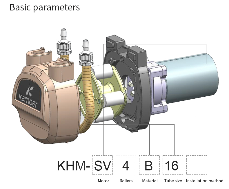 Motor selection -The KHM series peristaltic pumps are two kinds of DC motors driven peristaltic pumps, and 24V/12V DC motors can provide different voltage options.