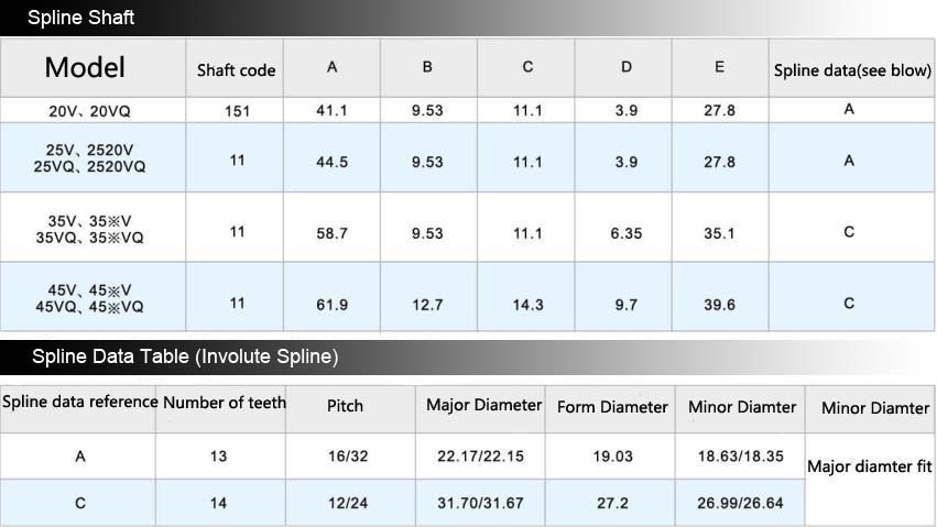 20VQ, 25VQ, 35VQ, 45VQ, 2520VQ, 3520VQ, 3525VQ, 4520VQ, 4525VQ, 4535VQ