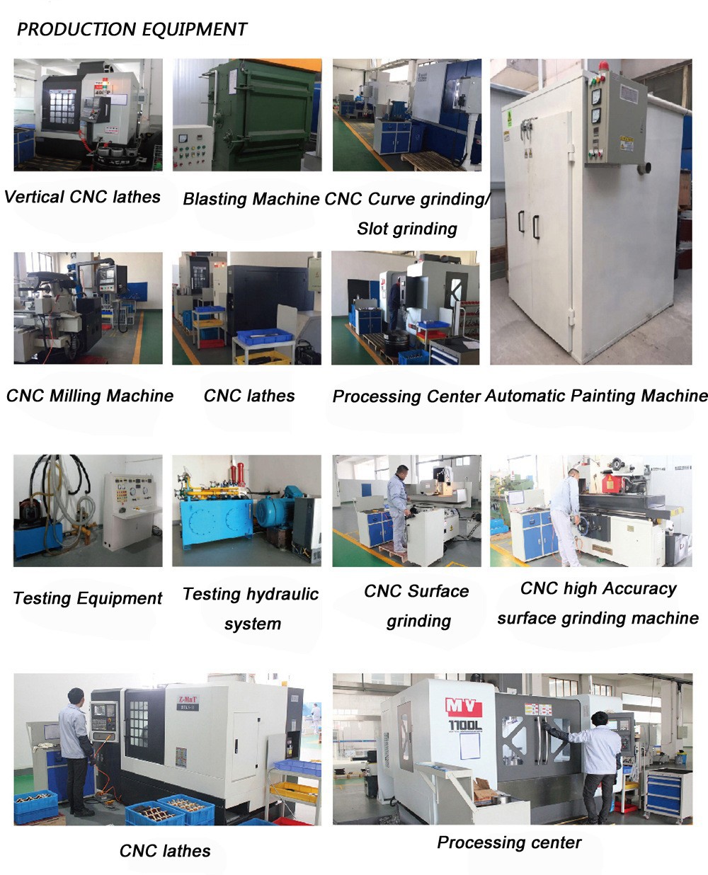 All the machines are new CNC machines we imported from Germany and Japan in order to reach more higher demand at the products accuracy.