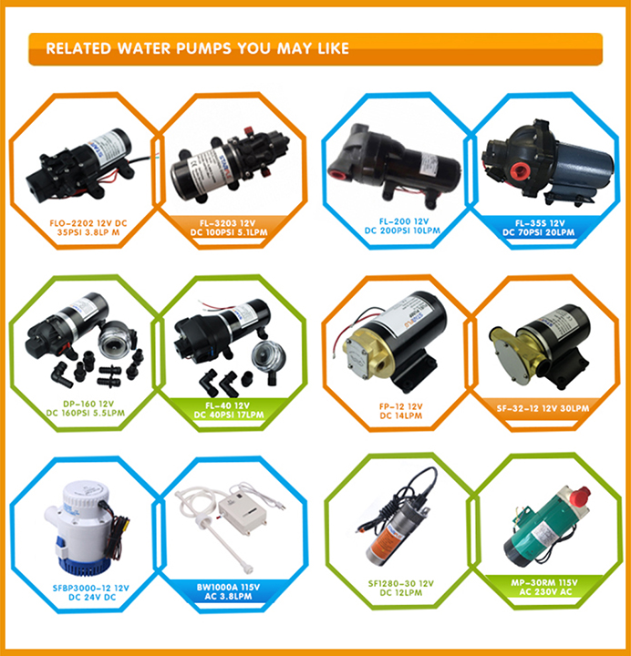 Q: What's your main products of your company? A: We specialized in all kinds of water pump(drinking water pump,micro gear pump,high performance diaphragm pump,Marine pump,RV pump, bilge pump )for over 8 years with excellent quality and competitive