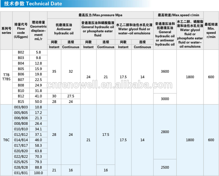 Model available: T6C, T6D, T6E, T7B, T7BS, T7D, T7DS single pumps