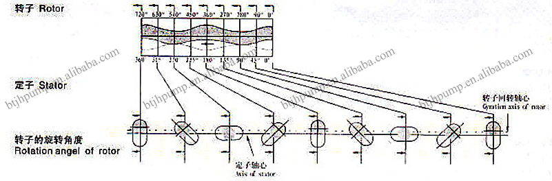 The elastic stator with special helical surface mold cavity and the rotor with big lead and big depth of tooth mesh and formed continuous seal line in the mold cavity of stator, separate the suction cavity from the extrusion cavity. When the rotor moves, the mold cavity moves to the discharge direction continuously, so the liquid be inhaled and discharged continuously.