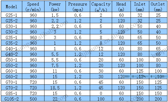 Parameter of G series screw pump