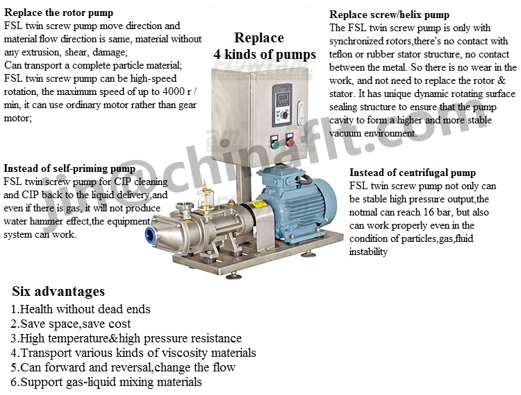 Stainless steel double mechanical seal twin screw pump for food