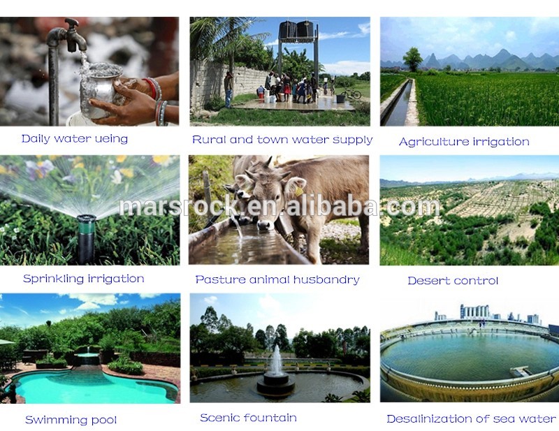 This device can be widely used for drinking water, vegetable planting in small areas, greenhouse irrigation, sprinkling irrigation for fruit farm and other water usage without AC. This device is an indispensable water lifting tool.