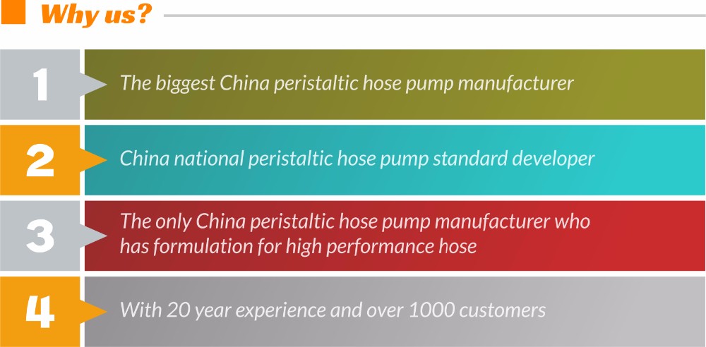 Patent hose formulation makes Huayun peristaltic hose pumps longer service time ideal for pumping highly corrosion & abrasion industries, pparticularly in chemical,mining copper,slurries transfer.