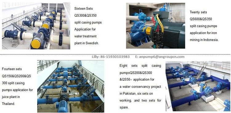 Model QS pump is a single-stage double-suction horizontal split centrifugal pump and used to transport pure water and the liquid of both physical and chemical nature similar to those of water, the maximum temperature of which must not be over 125 , suitable for water supply and drainage in factories, mines, cities and electric stations, waterlogged land drainage and irrigation of farming land and carious hydraulic projects. This series pump comply with the standards of GB/T3 216 and GB/T5657.