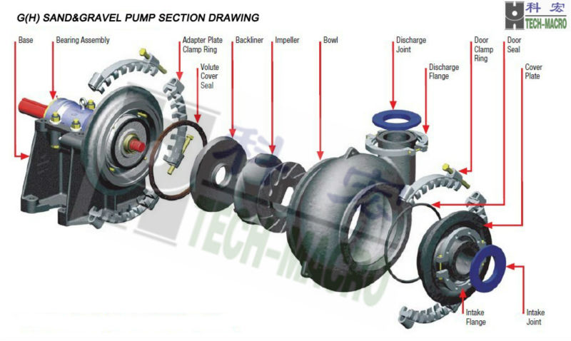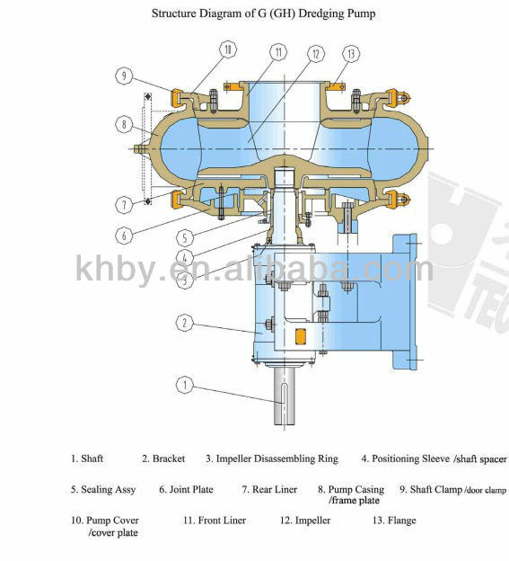 The G(H) pumps are designed for continuous high density, strong abrasive slurry which contain big solids unable to be transferred by other pumps.