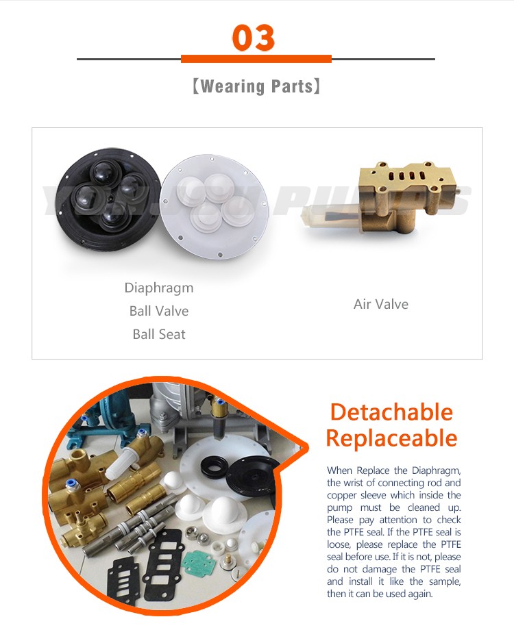 1.Glue and starch pumping with Air operated diaphragm pumps for solvent for Food& Chemical, Chemical Resistant Diaphragm Pump is the new kind of transportation machine, adopting compress air, smoke and industry exhaust gas as power source.