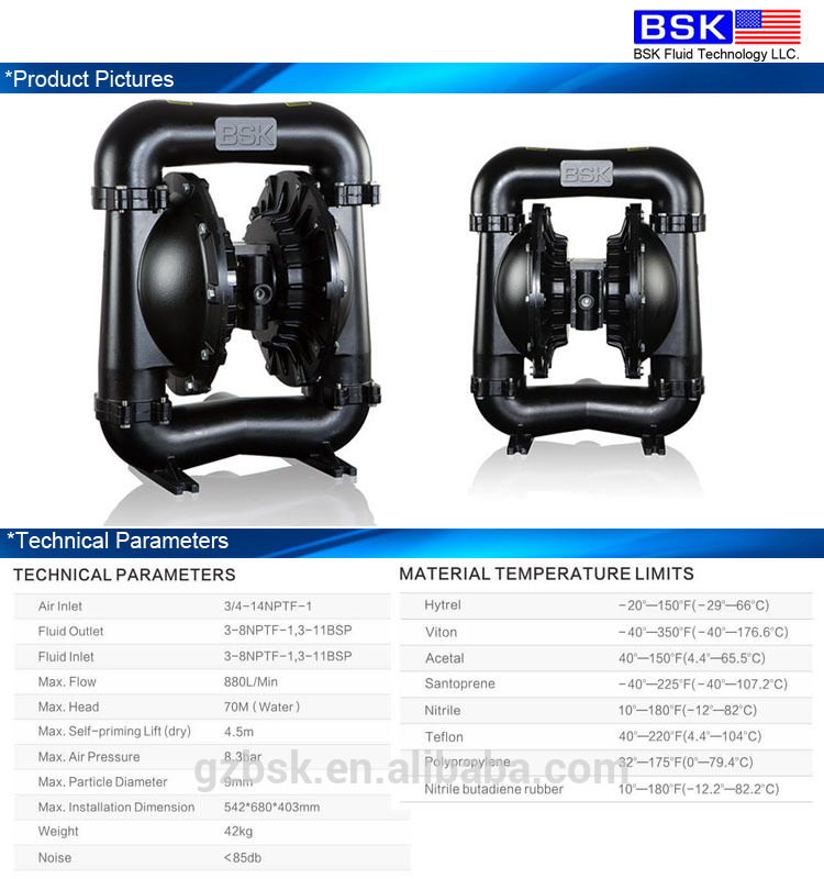 Pneumatic diaphragm pump is a new transport machinery , is currently one of the most innovative pump . Using compressed gas as a power source for a variety of corrosive liquid , with particles of liquid , high viscosity , volatile, flammable, poisonous liquid can be pumped optical exhaustion . There are four pneumatic diaphragm material: plastic , aluminum, cast iron , stainless steel. Pneumatic diaphragm pumps were used nitrile of different users . Placed in a variety of special occasions , for pumping a variety of conventional pumps can not pump the media , have achieved satisfactory results. | ||||