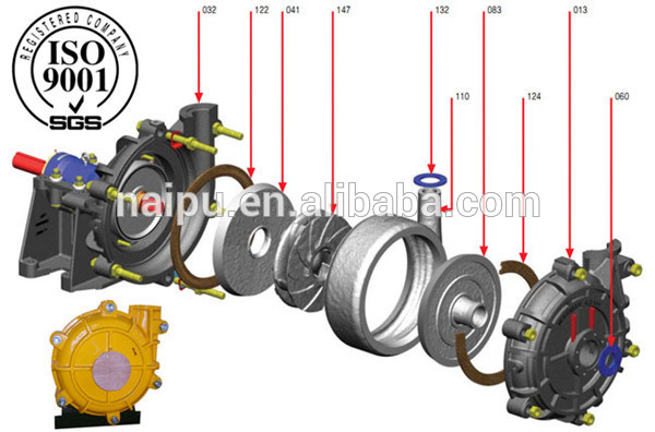 For example: a rubber volute liner and liners can be combined with an alloy impeller in operation, and a rubber impeller can be used together wit an alloy volute liner and liners.