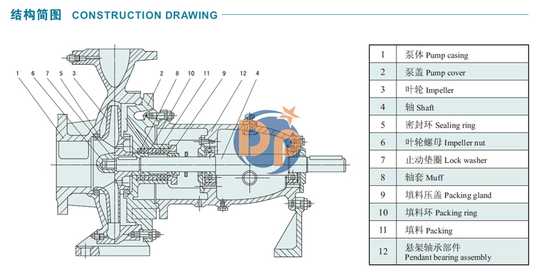 The depon® IH end suction chemical pump is single-stage end-suction(axial suction) cantilever type centrifugal pump,which is used to transport corrosive liquid with viscosity similar to water and without solidparticles.The marked and rated performances and dimensions adopt ISO2858 international standard.It has such characteristice as wide range of perfoumance,highefficiency,high mechanical and physical level andconverient maintenance etc.It is energy saving type product recommended by the nation with its efficiency being 5%greaterthan that of F model pump.