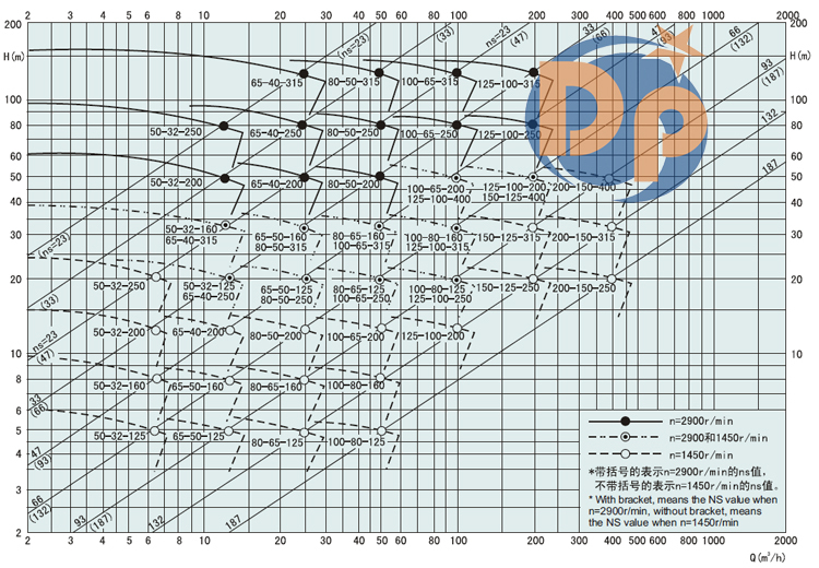 Note: The impeller form consists of such five kinds as O, A, B, C and Z, respectively standing for: