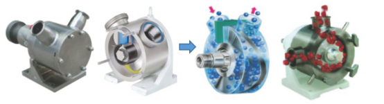 2. Sine pump: Special two sine-curve-like vane is taken, instead of rotor, epicyclic gear or piston, and it runs with a movable panel and a fixed line, forming a special volume pump and realizing liquid super low shear, without pulse feeding, although in condition of 10/15 bar back pressure (water feeding), there won't be any movement on pressure gauge.