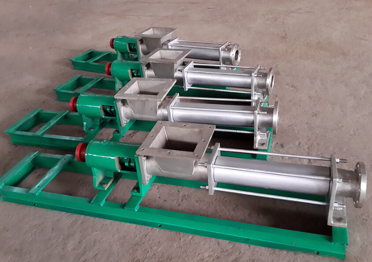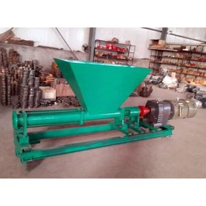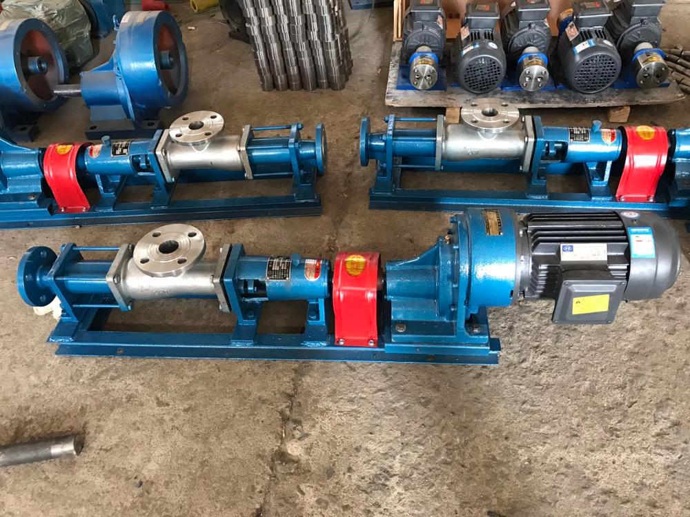 Honghai G type transfer tomato or potato mono screw pump with reamer screw pump belongs to the rotor type positive displacement pump, it is depend on the screw meshing with liner on the discharge and suction cavity to conveying liquid volume change.It is a kind of method of pressurized screw pump, a main working parts by bushing has a double helix cavity (stator) and the stator cavity and its meshing single-head screw screw (rotor).When the input shaft through the universal joint drive making planets revolving around the center of the stator, rotor stator, rotor, vice is continuous mesh form sealed cavity, the seal chamber volume invariably uniform axial movement, the medium from the suction end of deputy to the stator, rotor pressure side, the suction medium sealed cavity through the stator without stirring and destruction.