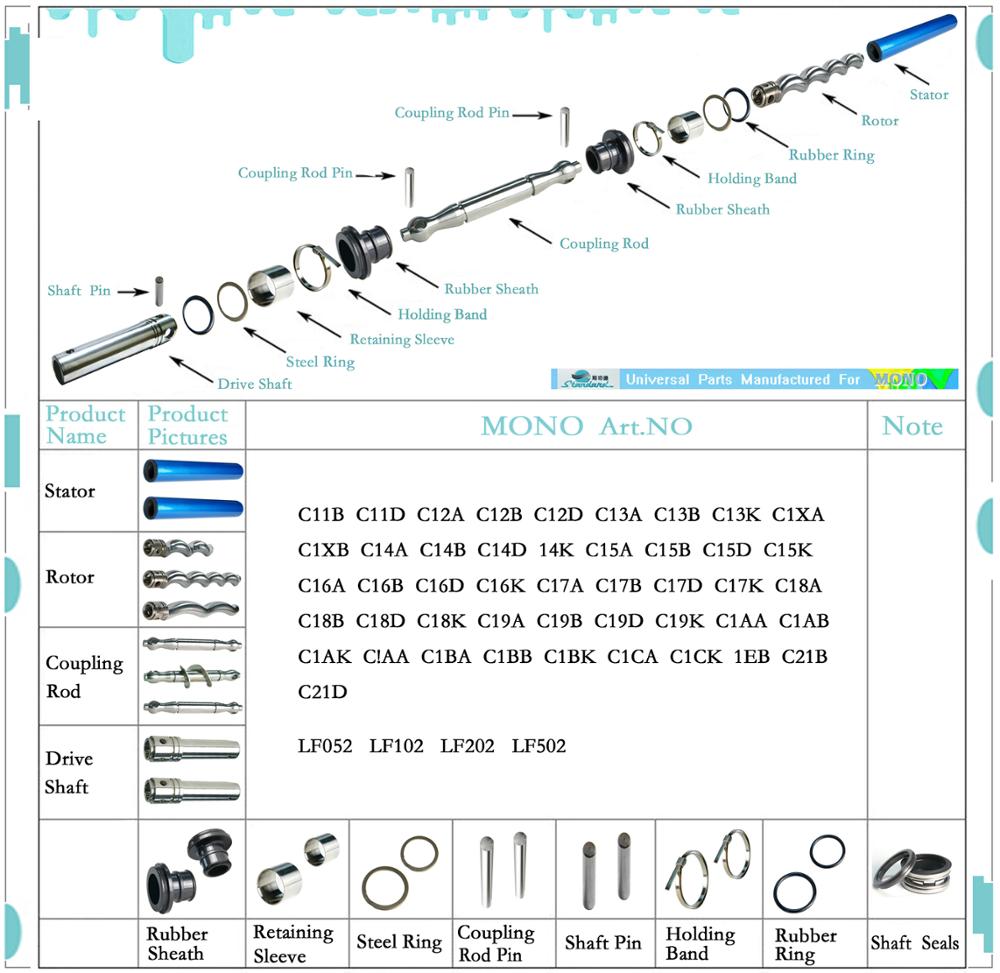 STD use their own expertise, manufacturing capabilities and channels to provide the world's major brands (Germany's Netzsch, Seepex, Mono, and so on) a full range of screw pump parts, these accessories performance is good, rugged, durable, including: stator, rotor, transmission shaft, joint shaft, PIN, PIN, or a complete set of rotating parts, etc.