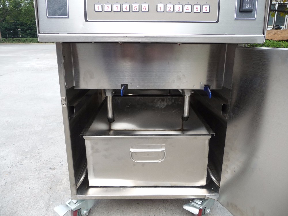 OFG series open fryer is our 2016 latest product which absorb foreign advanced technology, research and development of low-power high-efficiency. OFG-321 this product is based on original vertical fryer, through improvement and technological updating with using computer controlling panel instead of mechanical panel which is more accurately control time and temp, open fryer is made of high quality of stainless steel,beautiful and durable, to facilitate the daily operation .Maximum frying temperature up to 200℃.Fryer installed inside a filtration system, several filters,extend the life of frying oil, improve product quality, reduce the cost of oil . It is commonly used in fried foods restaurants, hotel and other catering eatablishments.