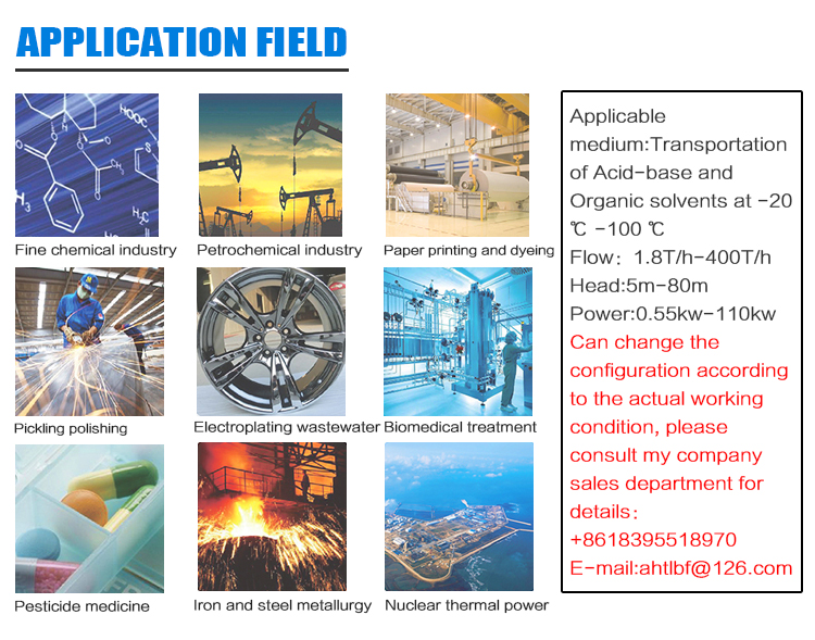 Centrifugal pumps :acid pickling, painting process in automobile manufacture, electrolytic solution transportation in non-ferrous metal smelting, etc.