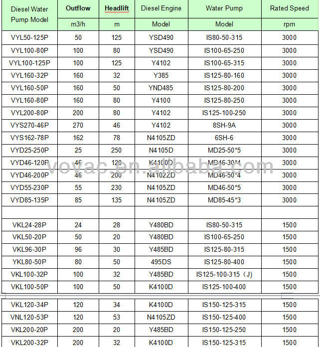 | Model of Diesel pump | V30DPK01 (Q=397 m3/h H=14.9m ) |