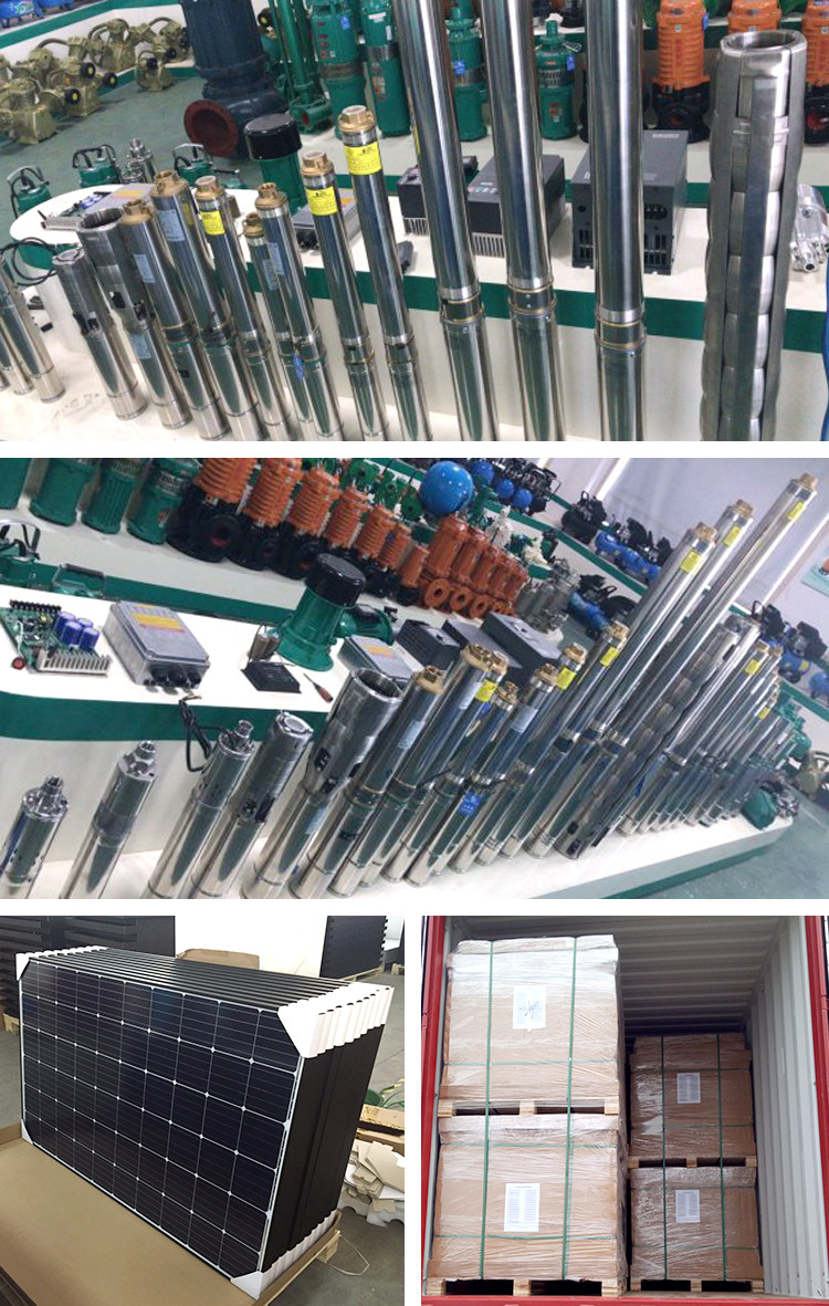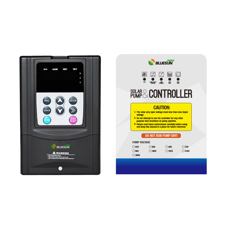 Bluesun solar pumping system mainly consists of solar panels, the specialized pump inverter and water pump.