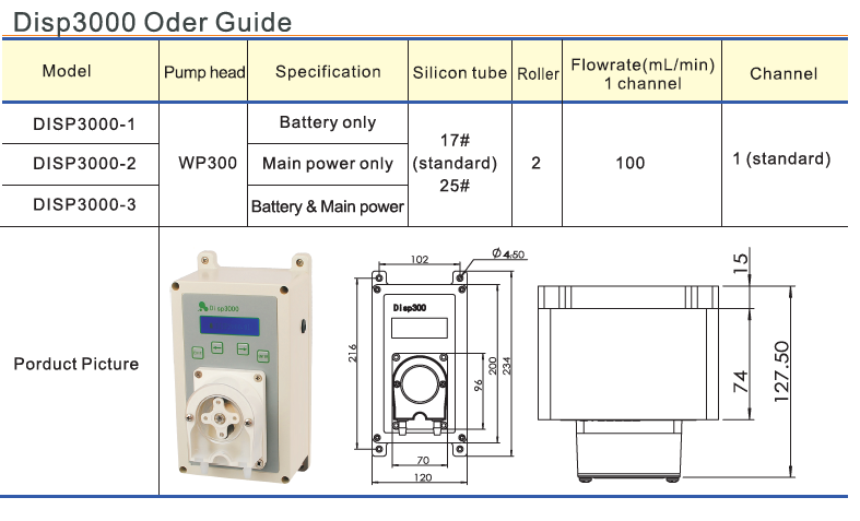Our Disp3000 micro peristaltic pump pump are in use worldwide giving dependable service. The unit has been used for dosing drains and grease traps, urinals, and in film processors, and many other dosing applications requiring reliability and ease of use. Due to the range of tubing materials available the unit can be used in a great variety of applications. The Disp3000 range of units are a new addition to our range and offer greater versatility and functionality in both the battery operated version described here and in 110v or 220v mains voltage versions.