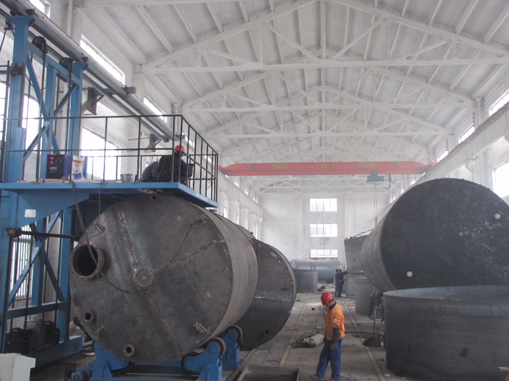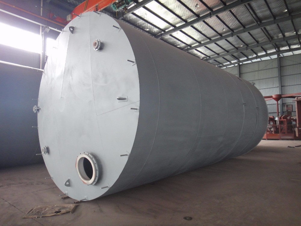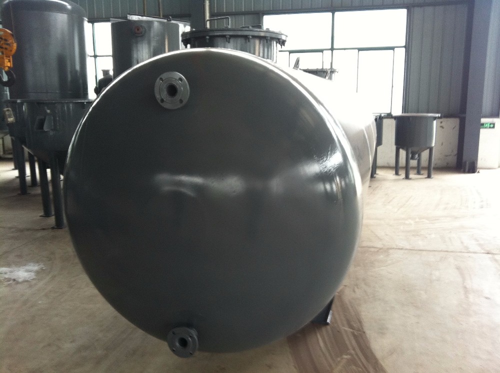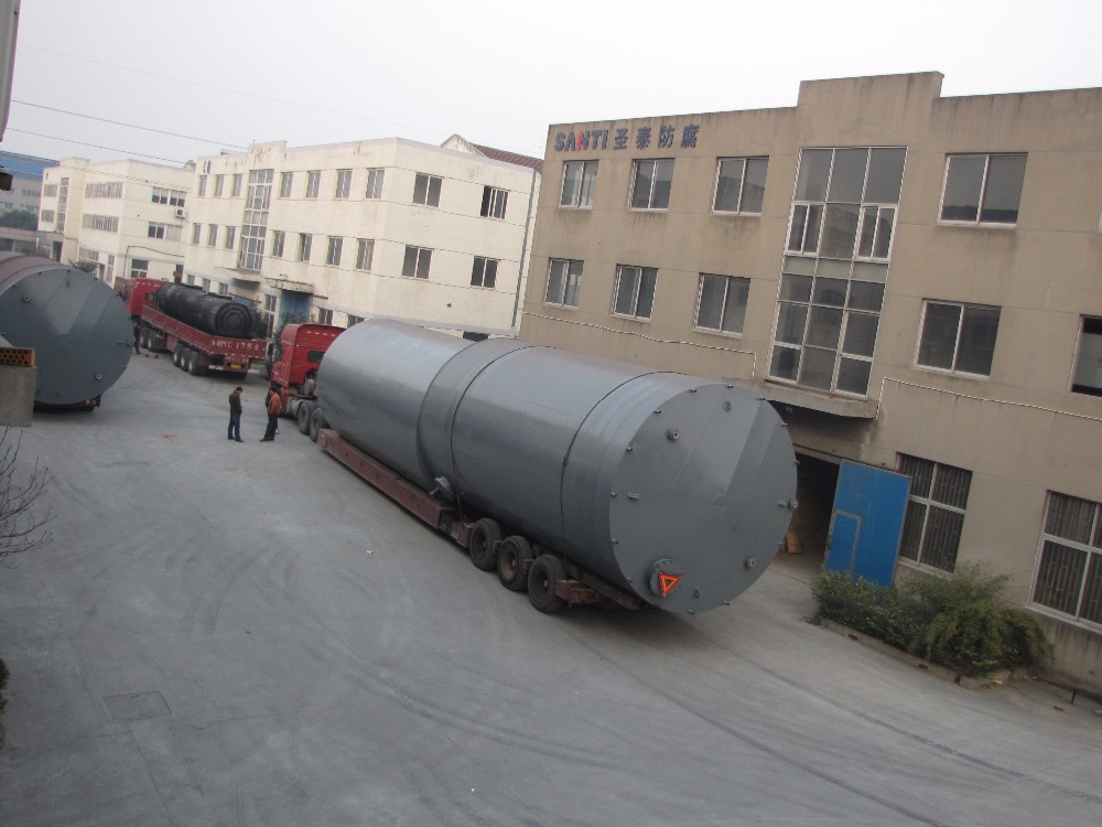 Plastic-lined steel tank applies state-of-art large rotational molding equipment, namely special process of rotational molding. The lined plastic (PE, PO) is completely molded in one trial, and the product features advantages of seamless, non-leakage, non-toxic, and aging, impact and corrosion resistance. It has long service life and smooth inner wall. All this makes it a best choice for corrosive liquid storage.
