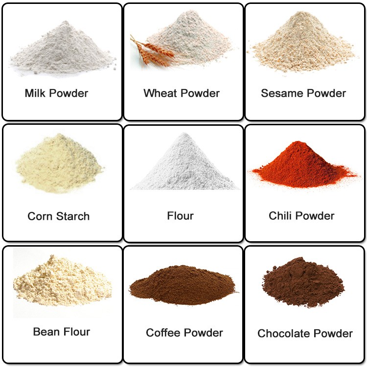 Applications:Milk Powder,Wheat Powder,Sesame Powder,Corn Starch,Flour,Chili Powder,Bean Flour,Coffee Powder,Chocolate Powder etc.