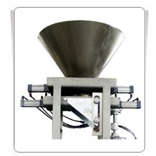 doubling as a timing bucket. product enters the transition chute while the bag is being opened below. Upon pouch detection the chute enters the bag and opens its gate. Product is dispensed immediately, without spillage and protecting the seal from contamination. Difficult product that easily bridges is dispensed into the pouch directly from the filler, through the "open-gate''