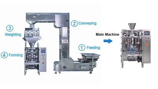 - Multi-heads weigher filling system for filling accuracy and good application to various kinds of products.