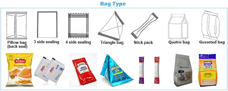 | Optional device | Date coder, Hole punching device (Pinhole,Round hole, The butterfly hole), Linking bag control device, Air-filling device, Air exhaust device. Tear notch device, Nitrogen inflation device, Gusset bag |