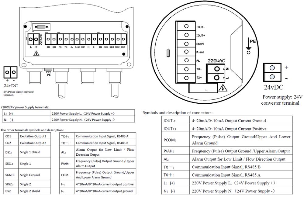 7, Various alarm functions: support excitation, pipes empty, upper and lower alarm.