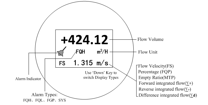 4, Multiple variables can be displayed simultaneously: instantaneous flow, total flow, flow rate, positive flow, negative flow, and the alarm state.