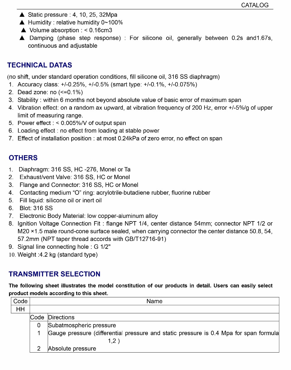 Pressure transmitter differential 4-20mA