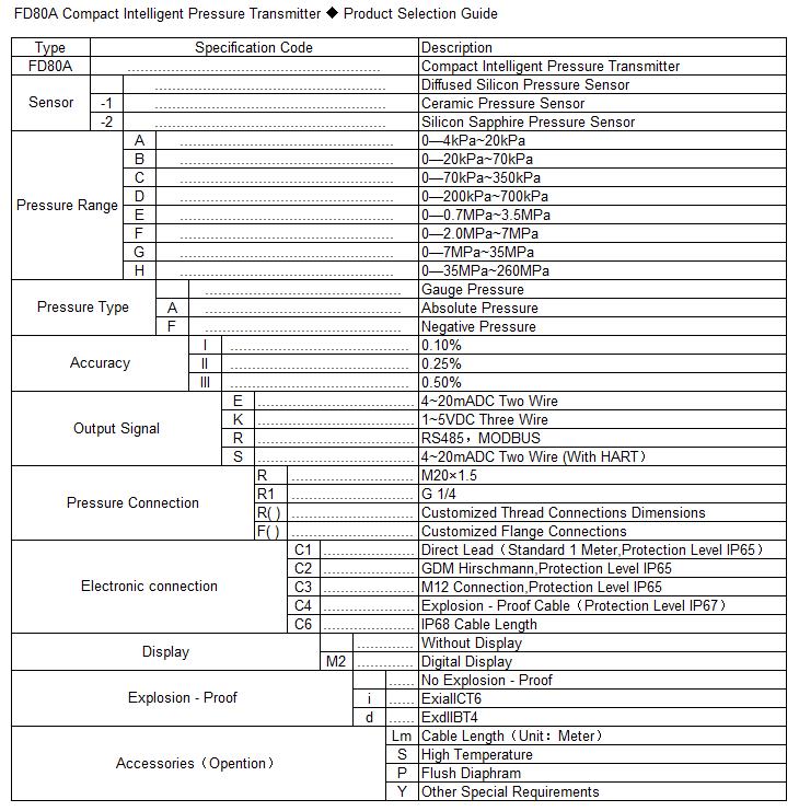 FD80A series Universal compact pressure transmitter has excellent reliability,practicability,flexibility and diversity,widely applied in aerospace,petroleum,chemical industry,electricity and water conservancy, industrial process, pressure measurement and control.