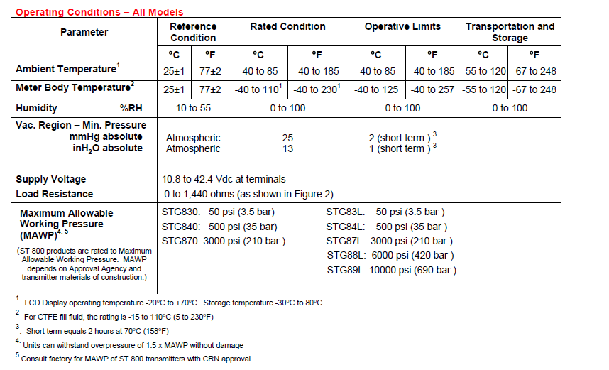 STG800 SmartLine Gauge Pressure Specification 34-ST-03-83