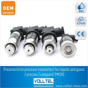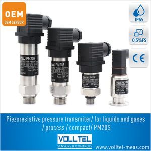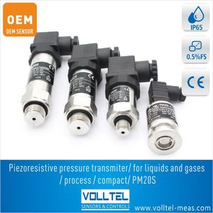 PM20S pressure transmitter is made from high-quality silicon piezoresistive sensor. The piezoresistive sensor is packaged in stainless steel housing. The PM20S pressure transmitter is precision engineered to fit most industrial pressure measurement.The compact and rugged design makes these pressure transmitter suitable for applications including process control systems, hydraulic systems and valves,refrigeration and HVAC controls,level measurement and test equipment.