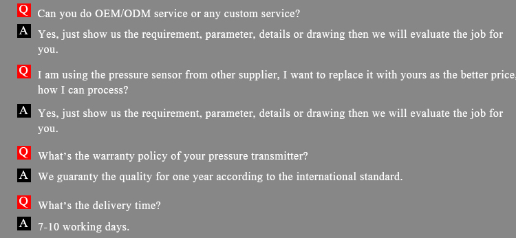 · Material: SS316, Ceramic Piezoresistive ( Anti-corrosive type)