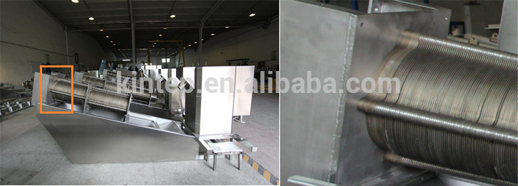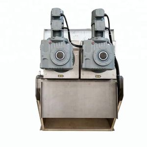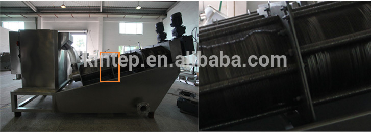 The wastewater is pushed into the dewatering machine.The sludge will move to the sludge cake outlet under the pressure of the helical aixs blades. Becuse the gap among the helical blades become narrower,so the sludge bear heavier pressure and begain to dewatering under the pressure.The water comes out from the space between fixed and moving plates.