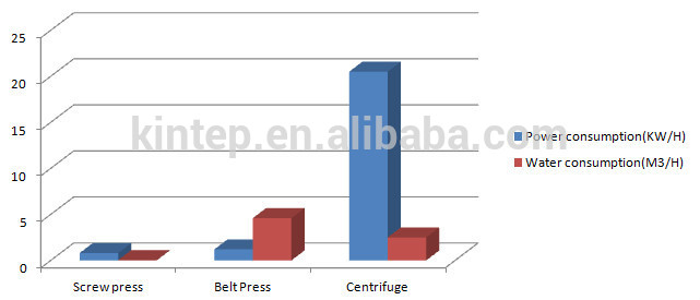 To deal with 30kg DS per hour, the energy consumption is much less than belt and centrifuge