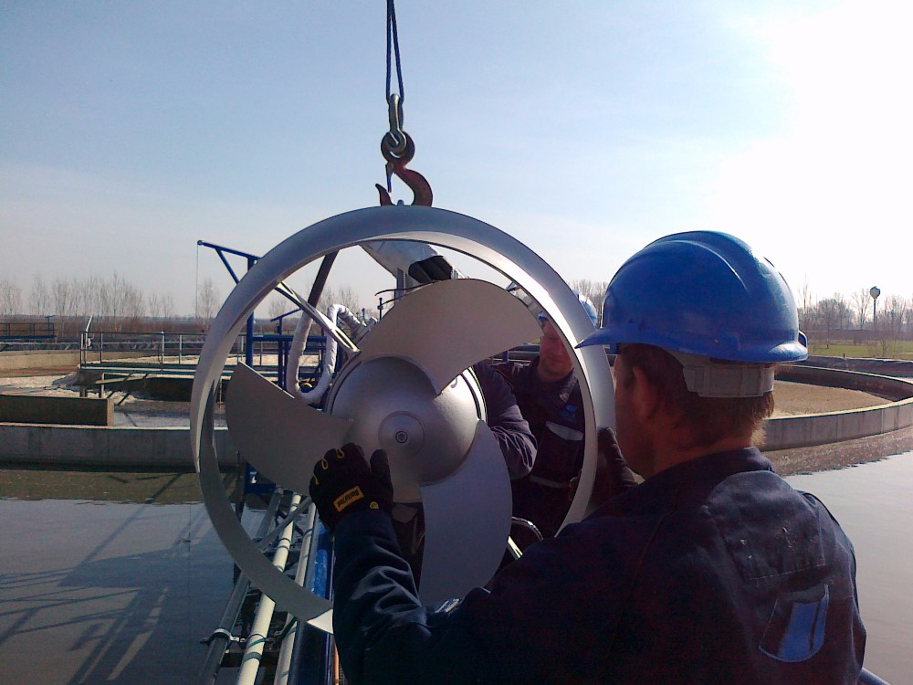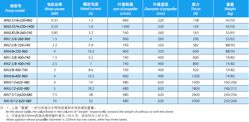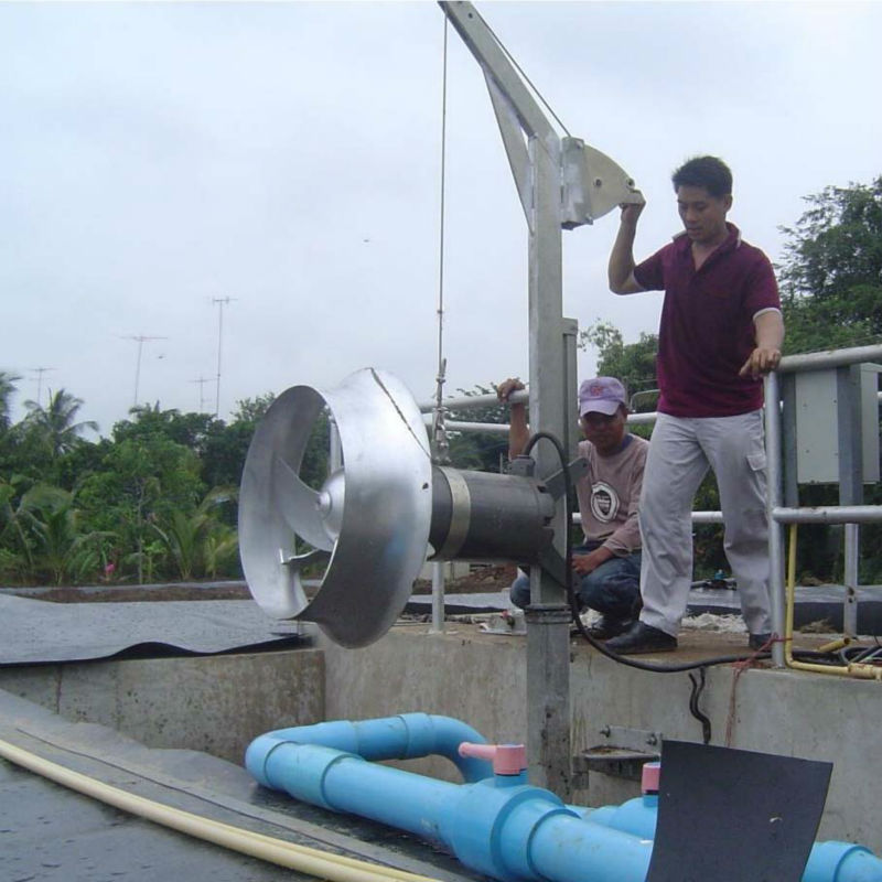 The purpose of mixing, agitating and making ring flows in the process of municipal and industrial sewage treatment: active sludge tank, bioreactor tank, mixing tank, equalizing reservoir, sewage tank and ect.; The maintenance equipment for the landscape water environment, improving the quality of the water body; Creating water flow, effectively preventing the sedimentation of the suspended substances.