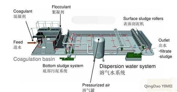 3. Jet flow device take air to dissolving-air tank,the air will be forced to dissolve into water under 0.35Mpa pressure and forming dissolved air water.