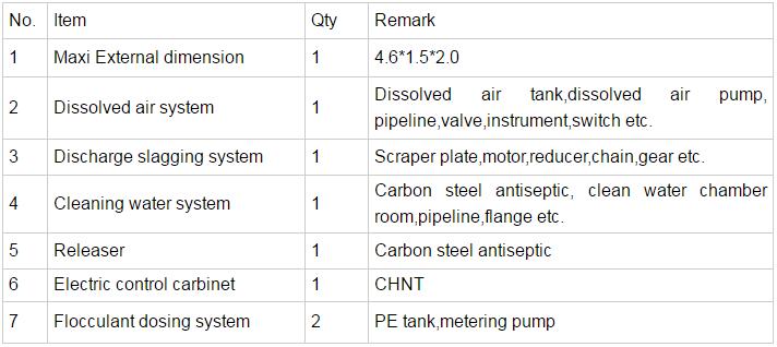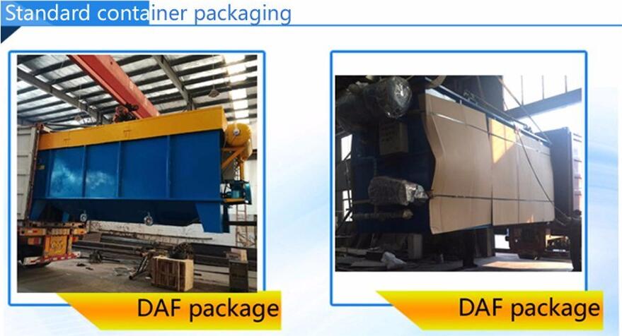 1)Air flotation machine:steel structure, it is the main body and core of DAF, which inside is composed of releaser,uniform distribution device,sewage pipe,outlet pipe,sludge tank and scraper system etc.