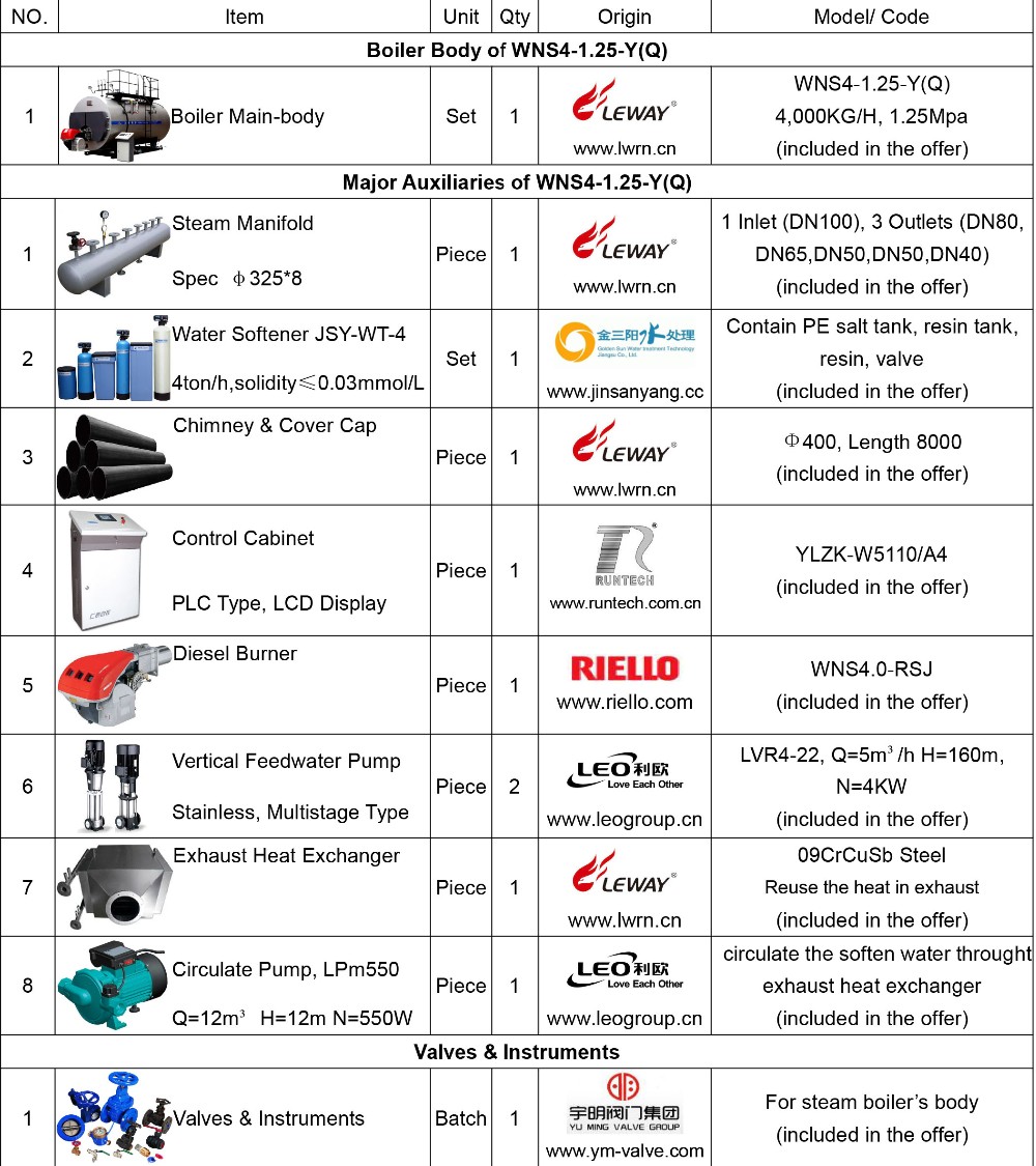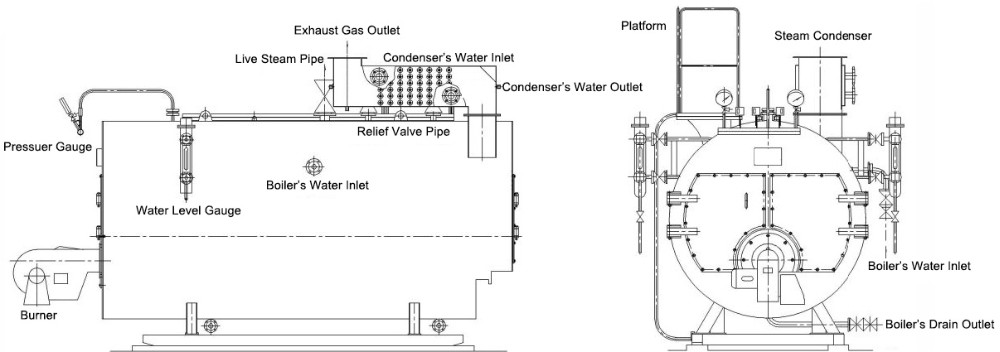 | Structure | Horizontal, 3-Passes, Wet-back, Corrugated Fire tubes |