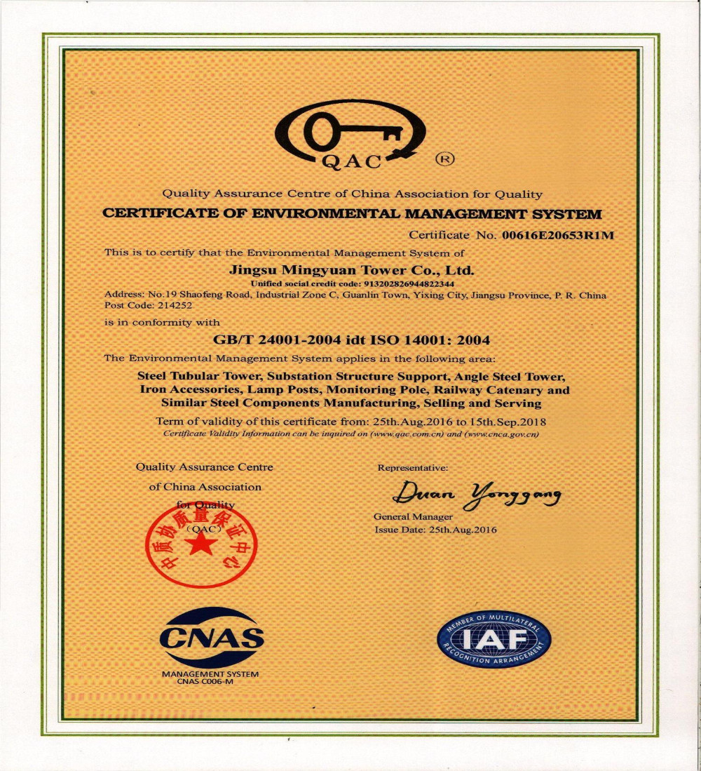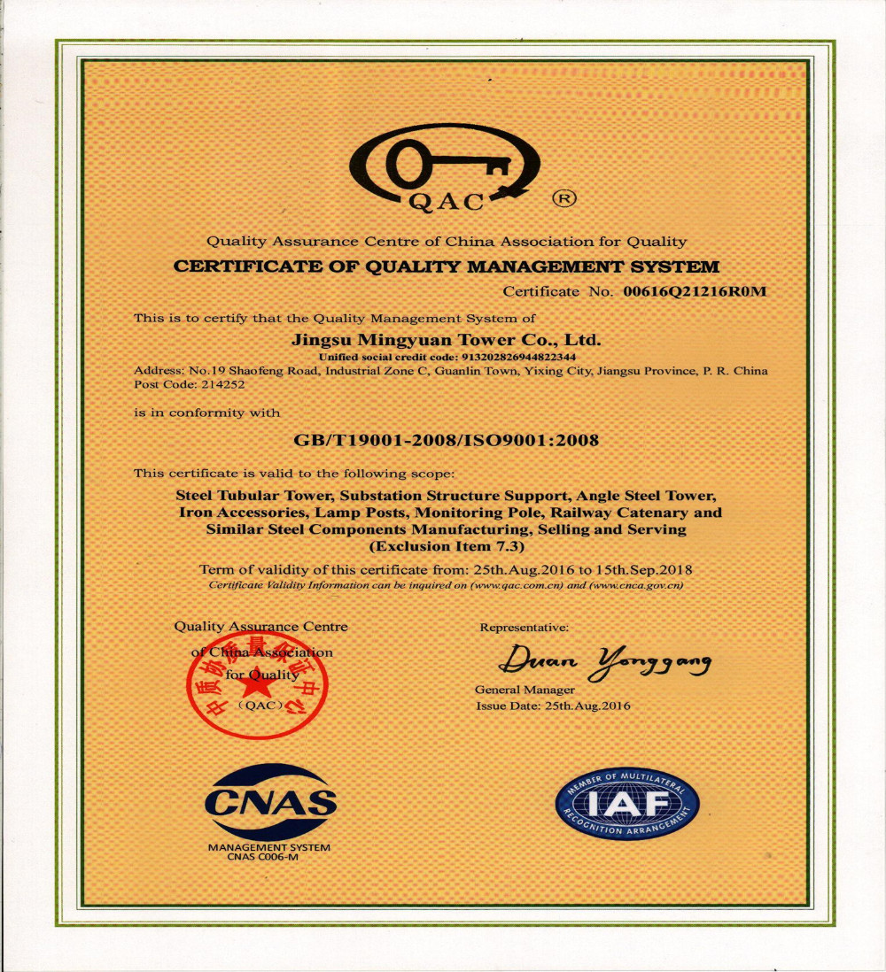 Established in 2009, Jiangsu Ming Yuan Tower Co., LTD.is a professional manufacturer and exporter that is concerned with the design, development and production of communication tower ,power transmission tower,Lightning rod tower, Traffic pole,lighting pole,Electric pole, solar bracket, Electric power transformation component,Iron accessories for transformer substation,Power Distribution Box,lighting. We are located in Wuxi City Jiangsu Province,with convenient transportation access. All of our products comply with international quality standards and are greatly appreciated in a variety of different markets throughout the world.